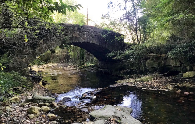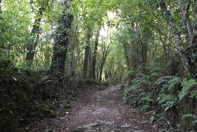 Another sojourn into the forest and although there’s the constant noise from the highway project it’s still overwhelmingly peaceful with birds chirping, dappled sunlight, and a pervasive coolness that lends an ethereal feeling to the woods. I know there 3 pilgrims just behind me but I feel I am all alone in the world.