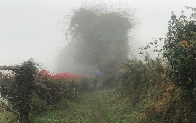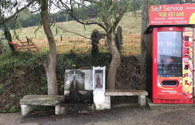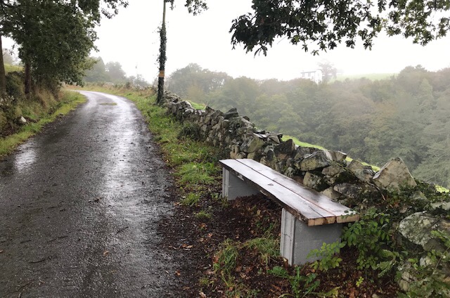 Today was a drizzly day. Not a bad day, just damp. Not so much as to necessitate putting my hood on and keeping my head down to avoid the rain, but wet enough to keep my poncho on all day. I’d made tons of notes on my walk but decided to tell it all in pictures (oh, not that I sat in any of these benches, there just seemed to be a plethora of them today):