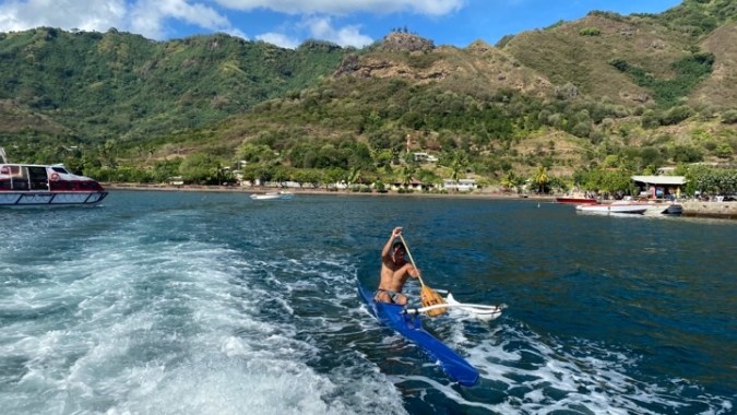 The locals love to surf their outrigger canoes in the wake created by our tender boats!