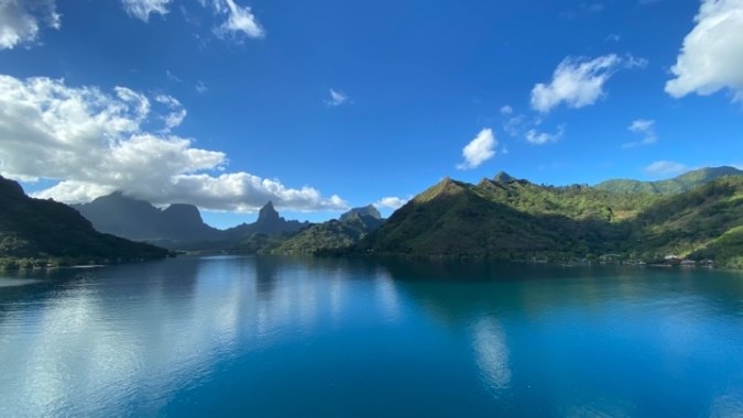 The glorious island of Moorea! I booked a morning 4wd island tour and it turned out a nice couple from Vancouver who were on my my Marquesas tour were also on it! 8 of us in total, originally all in the back of a pickup truck converted to an open-air bus with 2 rows of seats lining the bed of the truck. Our first stop was a viewpoint up a very steep and bumpy road and one poor little old lady could barely keep from sliding off onto the floor so she rode in the cab the rest of the day. All the jarring was worth the spectacular view: