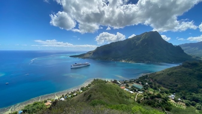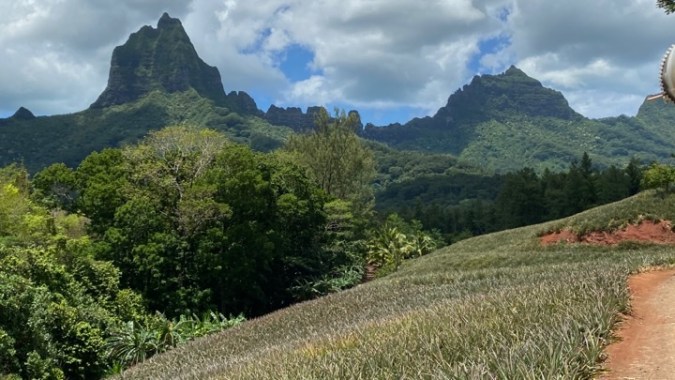 There was another cruise ship in the other bay to the Jewel – the exclusive “Paul Gauguin”. It’s actually based in Tahiti and makes one week trips around the Society Islands all season. We stopped for a photo op on our way to a tropical garden/vanilla farm, then a pineapple factory/gift store.