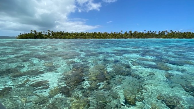 Continuing further around the lagoon we had a 2nd snorkeling spot at the north end of island where the water was clearer, the coral healthier and many small fish. There was hardly any current so it wasn’t as exciting a ride, more a gentle push.