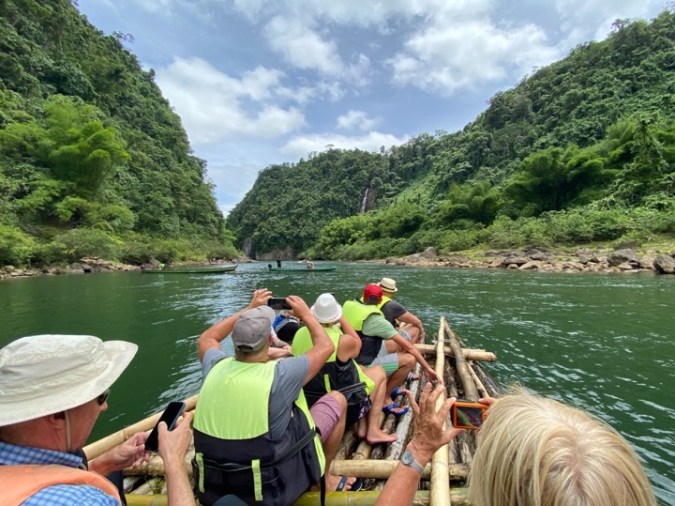 By 2pm we started our hour ride back to the village. We started zipping downstream in our longboat for a short while then we transferred to a bamboo raft for a gentle glide past a waterfall. This recreated the traditional transport of the locals but as there was no current we weren’t going anywhere quickly so back to the longboat and downriver to the village.
