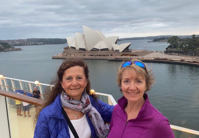 Another(!) crack of dawn morning today. Up about 4:45am, on deck not too long after as we’re heading into the Harbour of Sydney and I definitely wanted a view of that. We were just a bit too early for good light – the city still had its lights on as we approached, then it only lightened to a cool, grey day. 100’s of people were on deck, jostling for selfie space, which turned out to be a great opportunity to find friends to say our goodbyes.