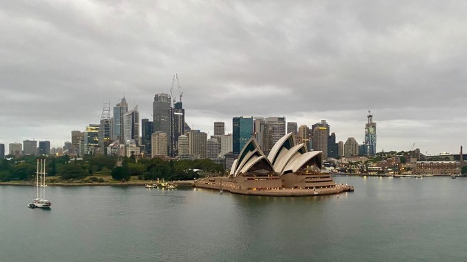 Another(!) crack of dawn morning today. Up about 4:45am, on deck not too long after as we’re heading into the Harbour of Sydney and I definitely wanted a view of that. We were just a bit too early for good light – the city still had its lights on as we approached, then it only lightened to a cool, grey day. 100’s of people were on deck, jostling for selfie space, which turned out to be a great opportunity to find friends to say our goodbyes.