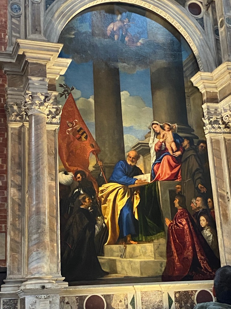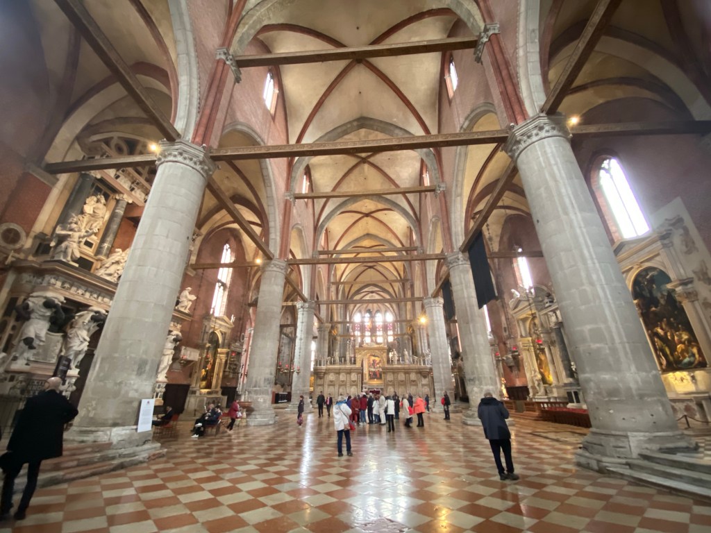 Dating back to 1330 this church was the 3rd on this site as the 1221 and 1250 versions were too small! It’s now truly vast and hosts several masterpieces by Titian, a Bellini, a 1488 sculpture by Donatello, and more, all in a soaring, airy venerable space. I do wish I had splurged on the audio guide as I’m always so curious about what I’m looking at….