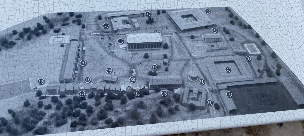 Terrible earthquakes, notably in 551 and 552, reduced the site to ruins and now it’s mostly just the outline of foundations and toppled columns and building blocks. There are info signs everywhere explaining what once was there but I’m afraid my imagination couldn’t quite see it so I settled for just enjoying the beauty of the day: the interplay of clouds then sun on the stone, the dappled shade of the pines and oaks, and the contrasting curves and corners of the ruins.