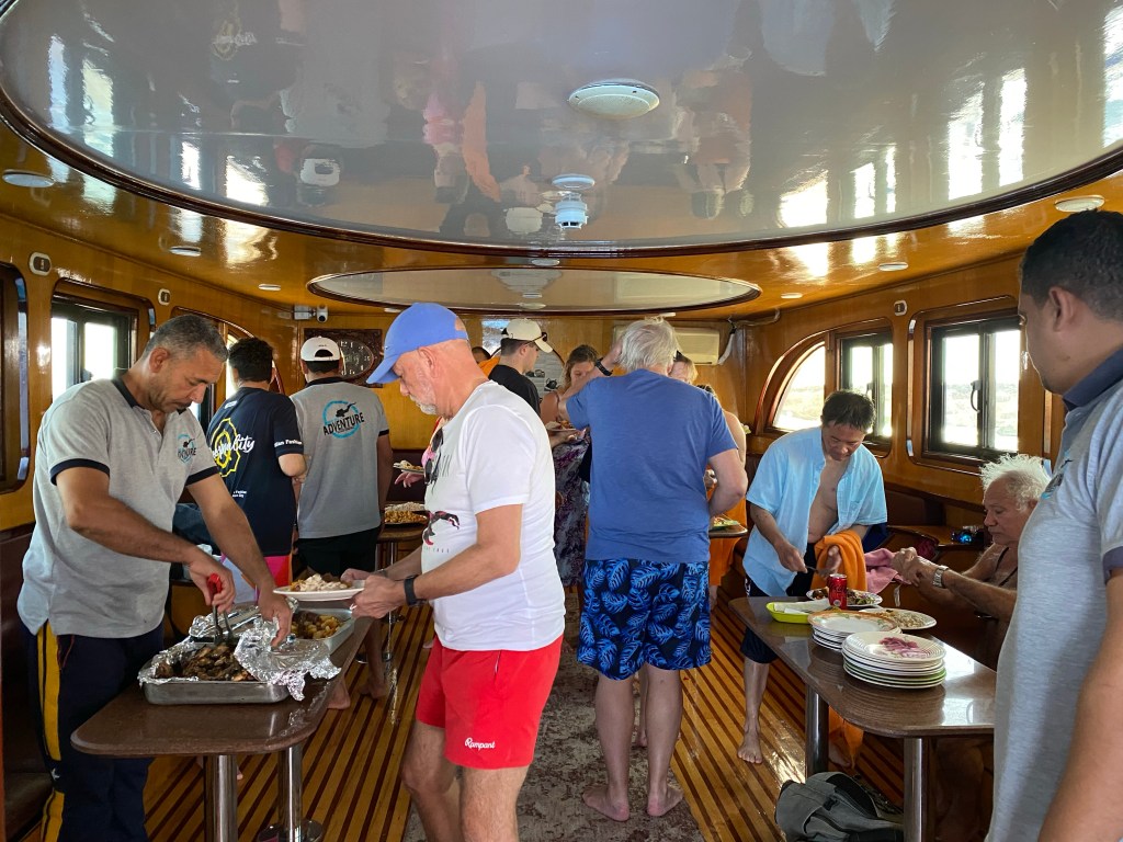 We then steamed to another location where I was told I’d be doing a Drift Dive – the boat would drop off the divemaster and I and the current was supplied to take us all the way to where the boat was going to anchor. Great in theory but there was no current at depth so I had to flutter kick quite forcefully for a long ways. Not much time to enjoy the little fishies. The snorkelers were all enjoying a huge lunch buffet by the time I returned so I grabbed a plate and dig in.