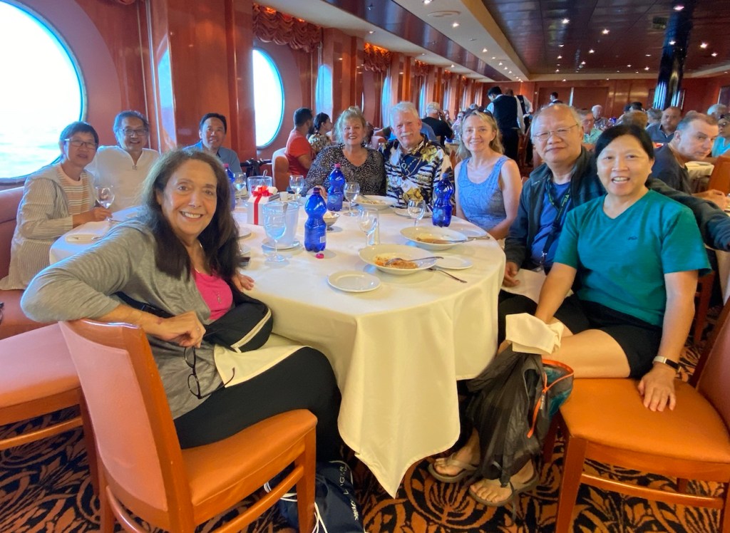1st my 1/4 mile trek for coffee. These days I bring back my breakfast too (yogurt with muesli and fruit) so I don’t have to deal with the mid-morning crowds in the buffet. After coffee a mile or two walking the jogging track, 2nd coffee, breakfast, shower, catch up on news, blog, morning lecture, lunch – see? Busy, busy.