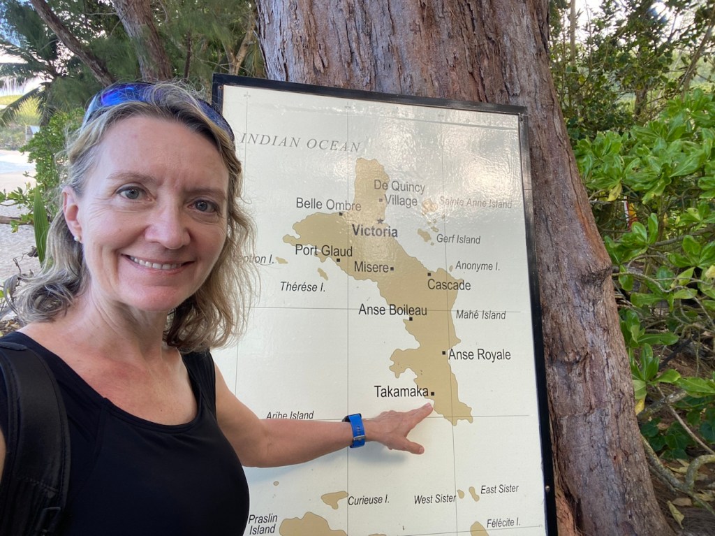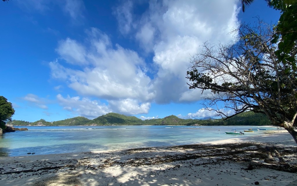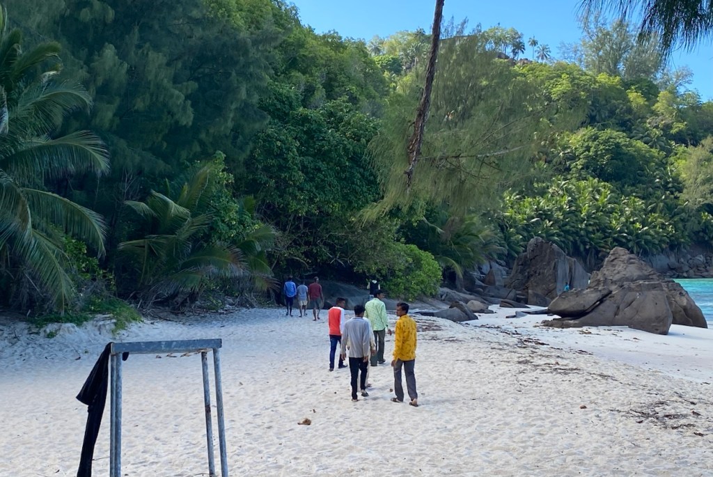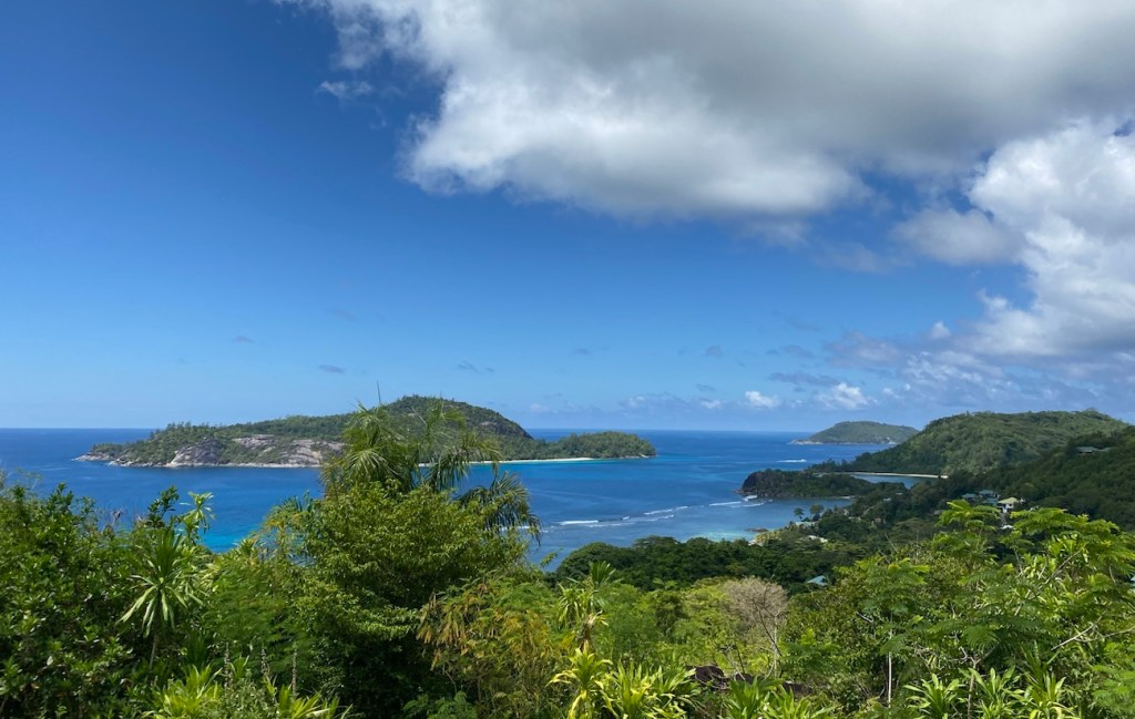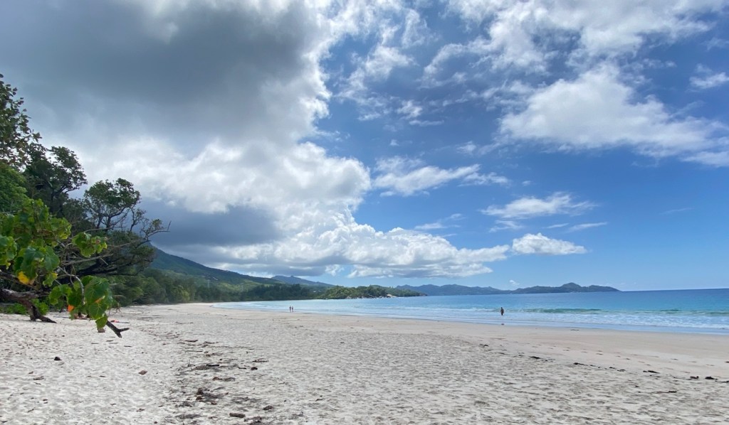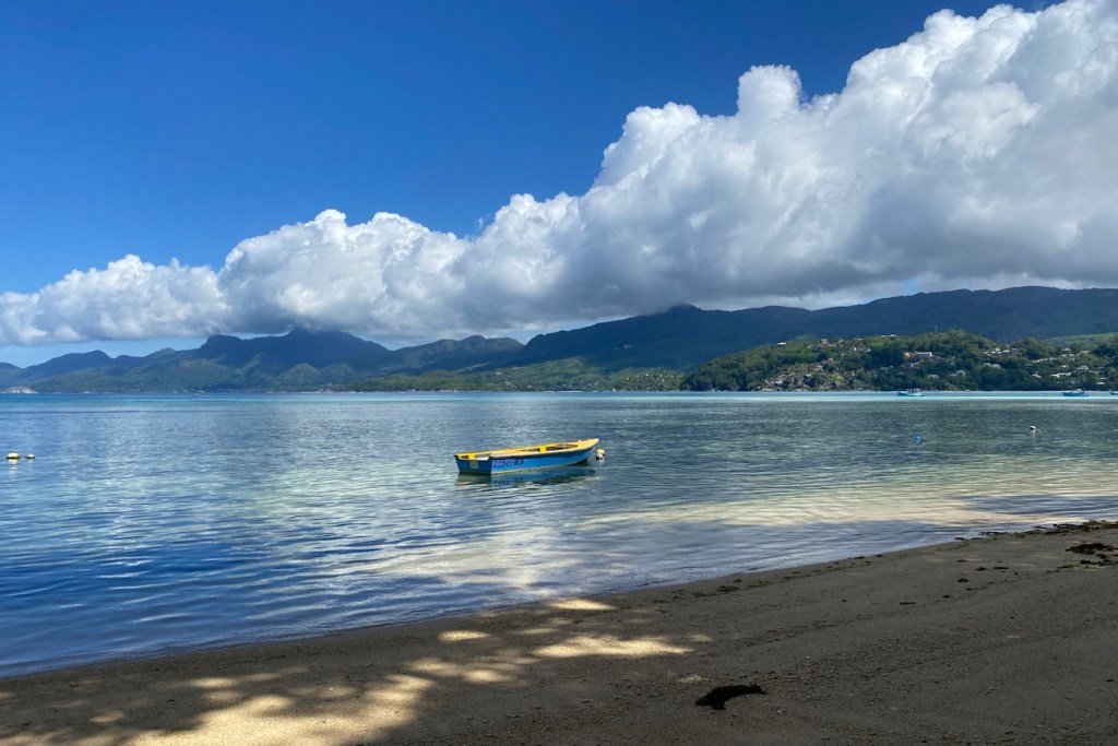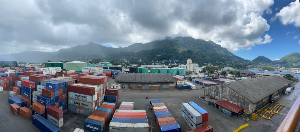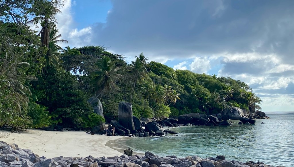 Typical Mahe – beach, jungle, sun, cloudsMy ride for the day. Left 7:30a trying to beat heat but dying for a swim by 8am. Not here tho…As this was the only bit of accessible sand and I thought I could do better. Not great lighting but pic shows those famous boulders that are a trademark of Seychelles Not easy driving and taking pics so not many good ones of island. At least you see it’s tropical jungle and mountains; I was expecting all flat & beaches I’m actually driving in the left lane though the photo may show otherwise. English-style cars, right-side drive. So thankful it was an automatic but could NOT stop turning on wiper instead of turn signal! Lol.Roads in the South chocked with men walking. Laborers looking for work? Many seemed to going to one of the many corner shops. These guys went to play on the rocks. No women until later in morning….Drove from Victoria down the southeast coast and across to Intendance Beach, just here….Random Police guy called me ashore and said it wasn’t safe to leave my bag on the beach, too many unemployed around. Wasn’t in uniform but was friendly and sincere so I believed him. That’s okay, getting tossed around as it was.Back on the road heading north up the west side. Calmer but fishing dudes hanging on the beach and now paranoid with my valuables so just took some snaps and continued on.Another cop story: I judiciously obey the speed limit, don’t want a surprise ticket in the mail so I pull over when impatient drivers pile up behind me. One honked and was up my rear so I eased in here, even though doing 40 kph in a 40 kph zone. It was a police car impatient with my speed 🙂The lush, mountainous interior. Taking the cross-island route back to town is up 900m through jungle and rainforest and clouds and tea plantations. Going east I missed the gorgeous views; well, couldn’t have taken eyes from road nor hands from wheel anywayThis is my only, low altitude, picOnce I completed my circuit of the island I was drained. Such narrow twisty roads required such concentration, I decided I had enough driving for the day so I returned to the ship. Looks like showers & sunshine for the afternoon so not the best weather to be out…