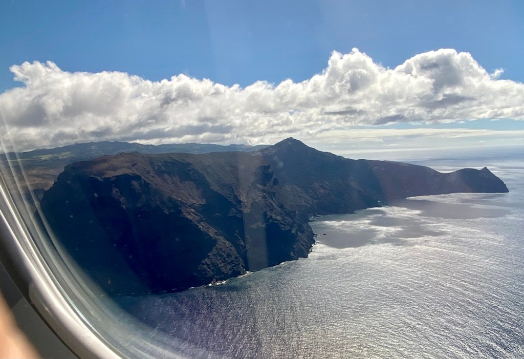 2 long hours to Walvis Bay, Namibia for a 15 minute refueling stop then a mind-numbing 4 hours to St. Helena. The issue this morning is that they can only fly a smaller plane to HLE, as the runway is only so long. They flattened a mountaintop to make the airport but the mountain itself was only so big. As it was it seemed we used every inch of it to land today and it wasn’t even windy.