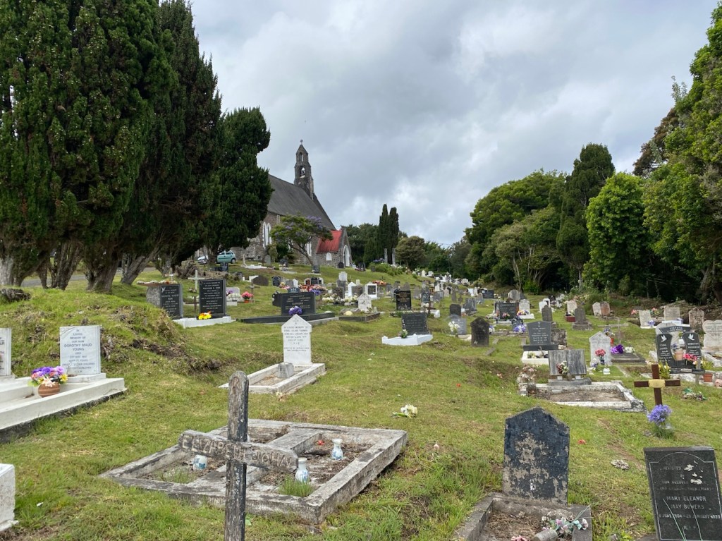 Next up I stopped at the cemetery, mostly because I overshot my turn and had to do a U-ie right in front of it. It’s very large and very picturesque with blooming alliums and green, green grass.