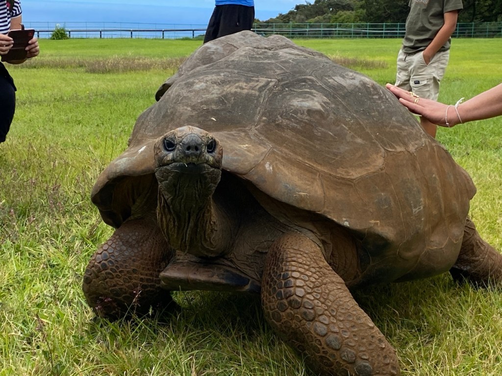 1882 Jonathan was dropped off a sailing ship with 3 others, and has been here ever since. He just celebrated 190 this year which was covered by the worldwide media, including a feature on CNN. 2 Dutch ladies on the tour came to St Helena specifically to meet him! He now has 3 new companions, only in their 50’s I might add.