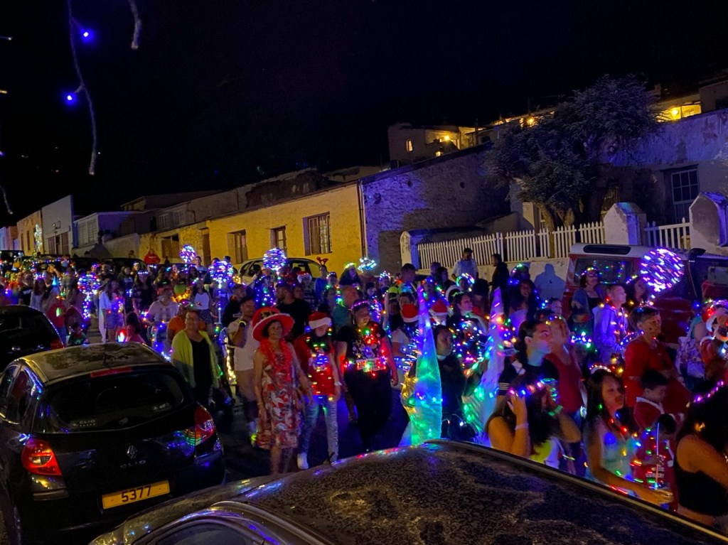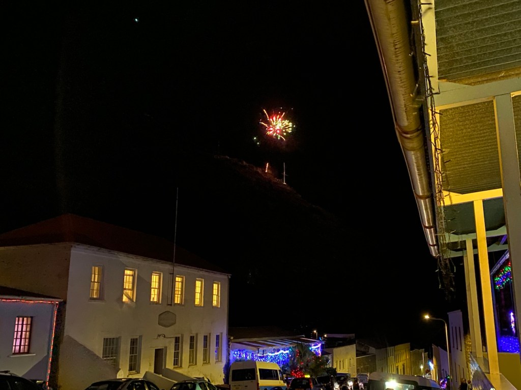 I had an early dinner down at Anne’s Place. Susan and her husband were there so I joined them for my meal. It turns out they have family in Vancouver (Westview!) so we had lots to chat about. I made sure to return in plenty of time for the Festival of Lights, a street parade that passed right in front of the B&B’s front porch. It’s a huge event and hundreds of Saints drape themselves in lights and dayglo stix and inch their way to the harbor front where they party and have fireworks shoot overhead from Ladder Hill.