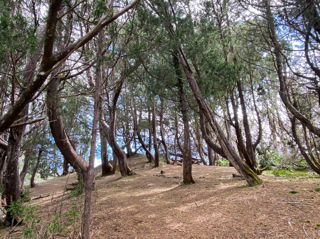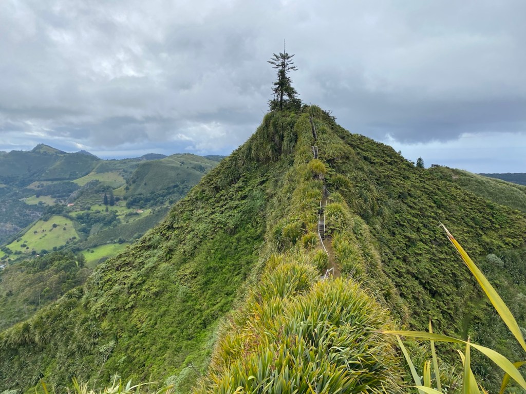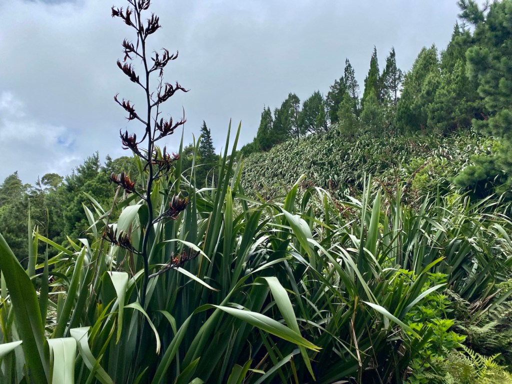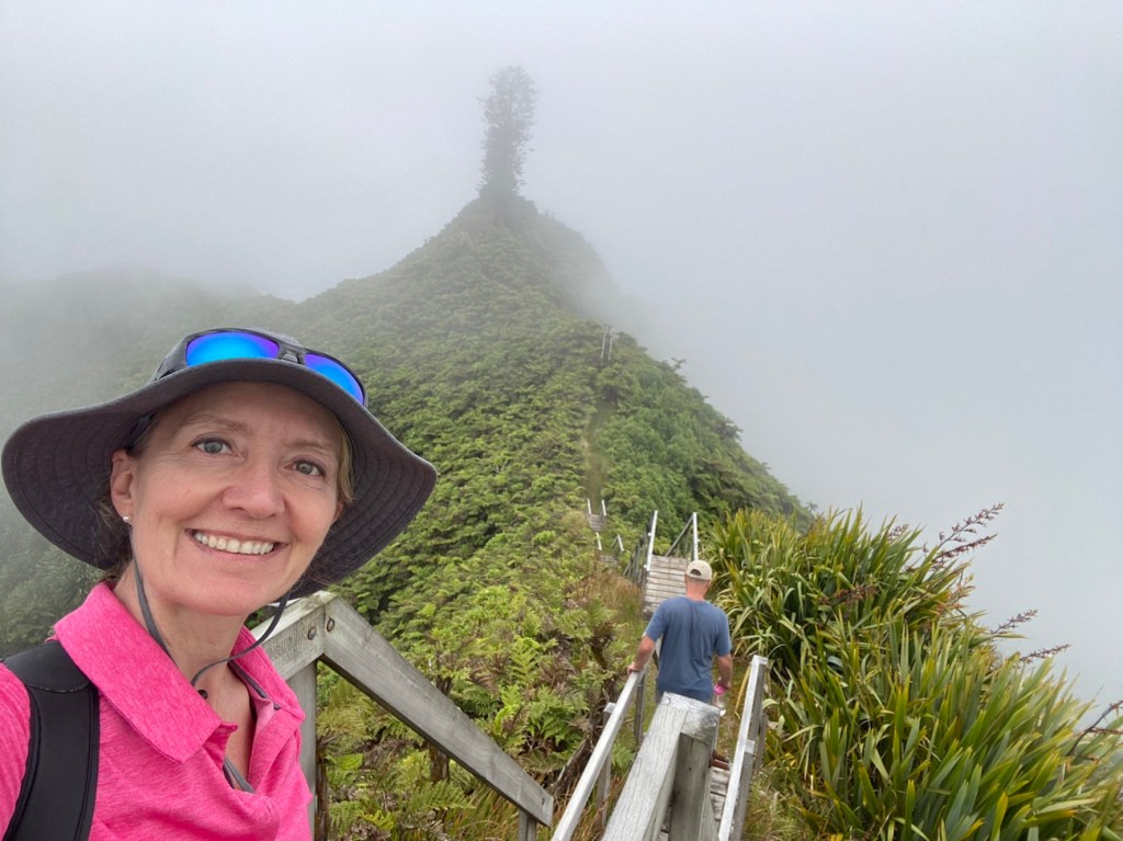 The hike starts with a 1/2 mile trek up a grassy “road” lined with huge, overgrown flax plants before getting to the “hike”. We chose to do the 3 peaks as an out-and-back, mostly because of time and the fact that once we reached the 3rd peak the mist socked in and we couldn’t see a thing! Stunning views all around on the way up, and totally within a rain cloud on the return. Only about 2.25 miles in distance but considerable elevation with a lot of stairs.