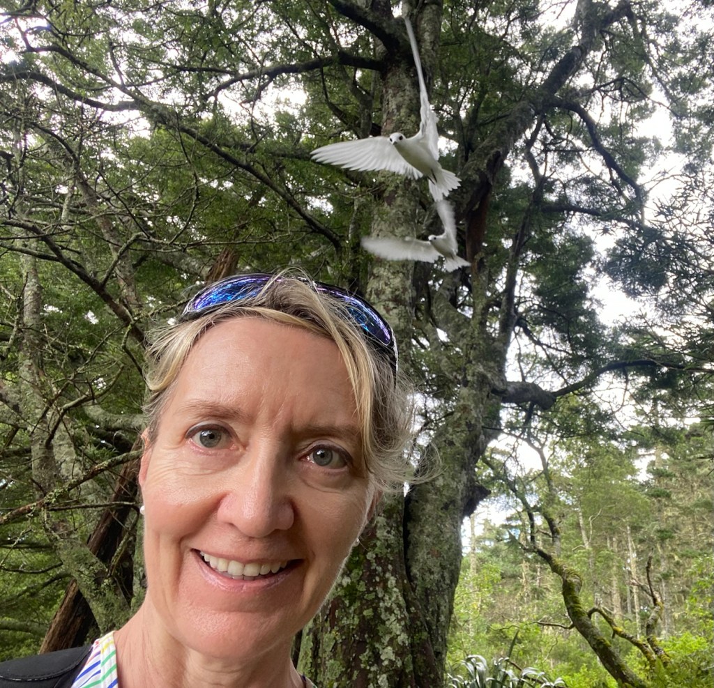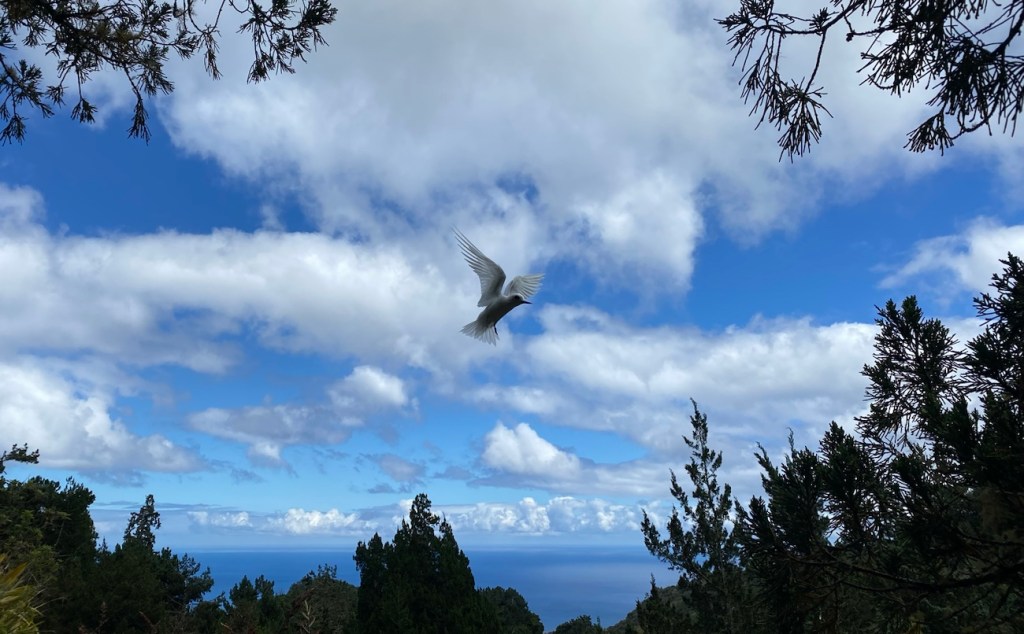 My first stop was at Clifford Arboretum, just left of center of the island. Up here it’s lush and green and there’s restoration efforts to combat the invasive species and restore the endangered endemic ones. The forest on one side of the road was closed for bug control so I followed a sign “Macintosh” downhill on the right. I had no idea where I was going but was accompanied by almost a dozen fairy terns, chirping and swirling above my head.