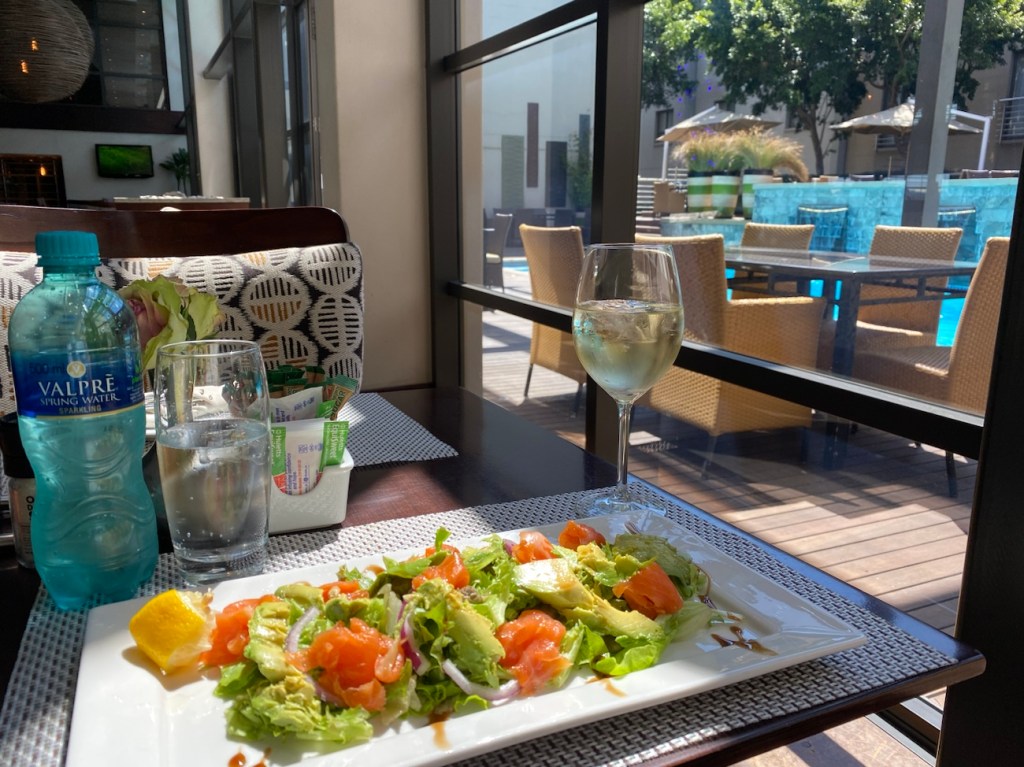 The food, it’s presentation, and the service in this budget hotel is amazing. Salad, wine, and dessert for $16. I’m trying hard to spend the 500 rand (or $30) I exchanged last week but it’s proving difficult with such a favorable exchange rate. I think I’ll be buying more chocolate at the airport….