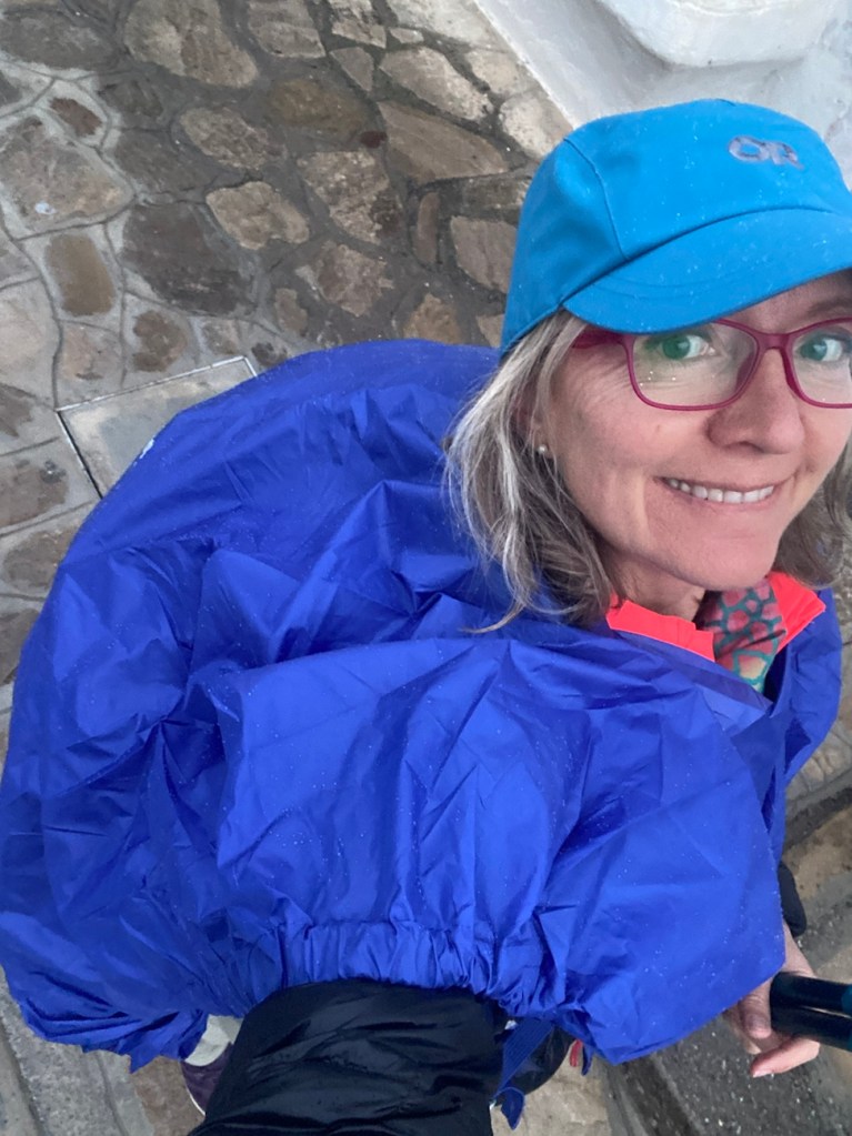 Well, the forecast isn’t as bad as expected, supposed to be clear until 1p so I set off early, 7:45a which is really like 6:45a except that Spain’s on the wrong time zone, and immediately had to put on my quasi pack/poncho as it was raining!
