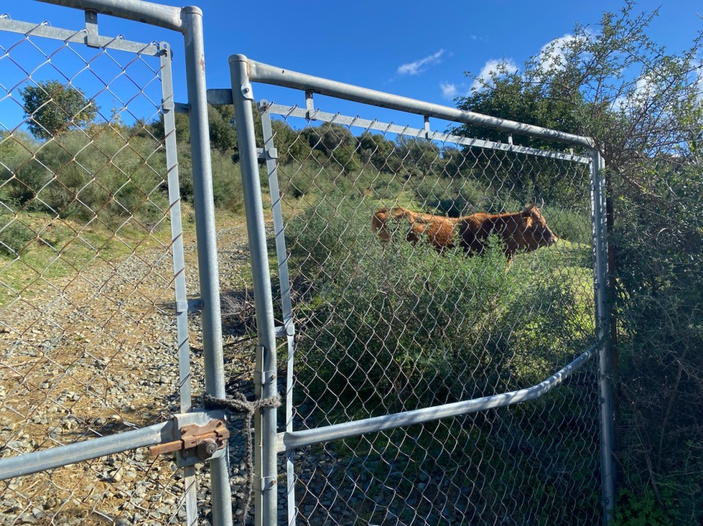 It wasn’t until 10k that I got a reprieve from the asphalt and entered a private estate (orange groves) then thru another gate guarded by a big horned beast.