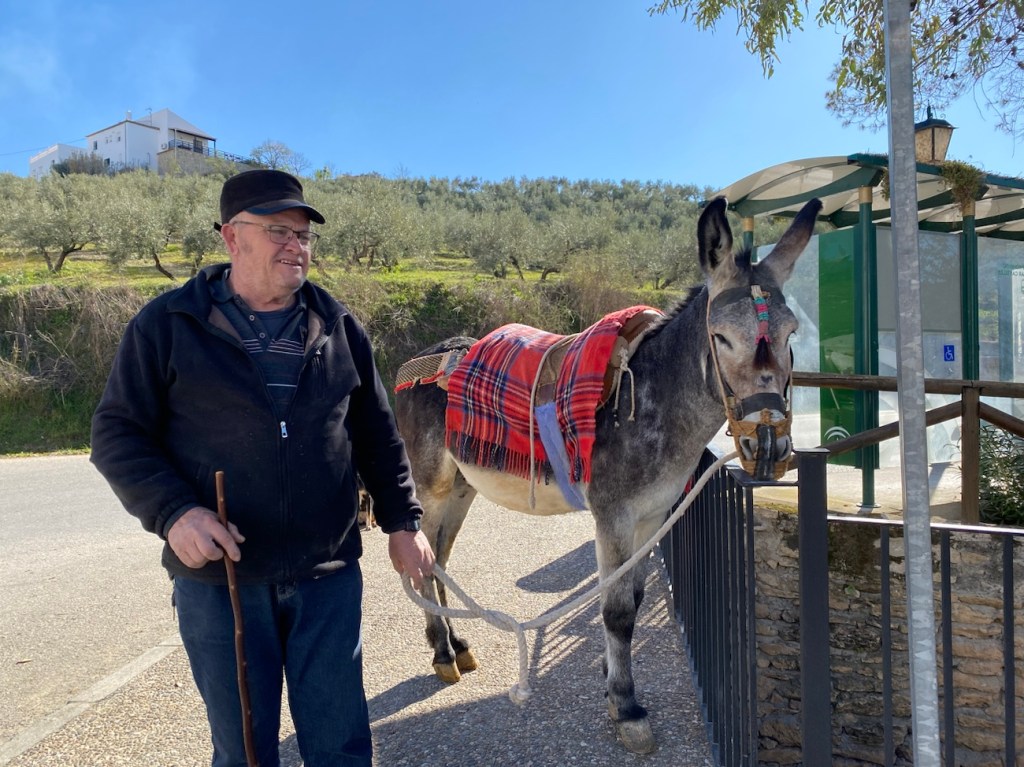 and by 10k & 11a I had arrived at Torre Alháquime and I was ready for my coffee so I stopped a man and his donkey and got directions to a local bar….