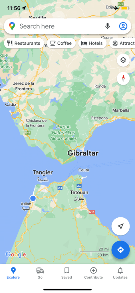 Today was mostly a driving day – 4 hours north to Tangier, then 2hrs southeast to Chefchaouen. Our day didn’t end till 9:30p so my blog posts are bound to be shorter if each day is this busy!