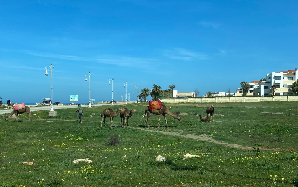 We arrived in Tangier just after 12p. We turned off the highway and like magic all of a sudden everything is lush and green with wildflowers, fancy villas, camel rides, and most impressive the Atlantic Ocean. We stopped at a lookout over where the Atlantic mixes with the Mediterranean, had lunch, then drove past all the zillion dollar villas on our way to the new town.