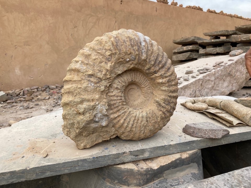 He gave us an option to stop at a fossil factory (?). This area is overflowing with fossils, kick a rock and it’s probably a fossil. The factory collects huge boulders, slices them open, and reveals all kinds of 300 million years old nautilus, squids, jellyfish and more. I’m fascinated by this oceanic archaeology and bought an ammonite shell.