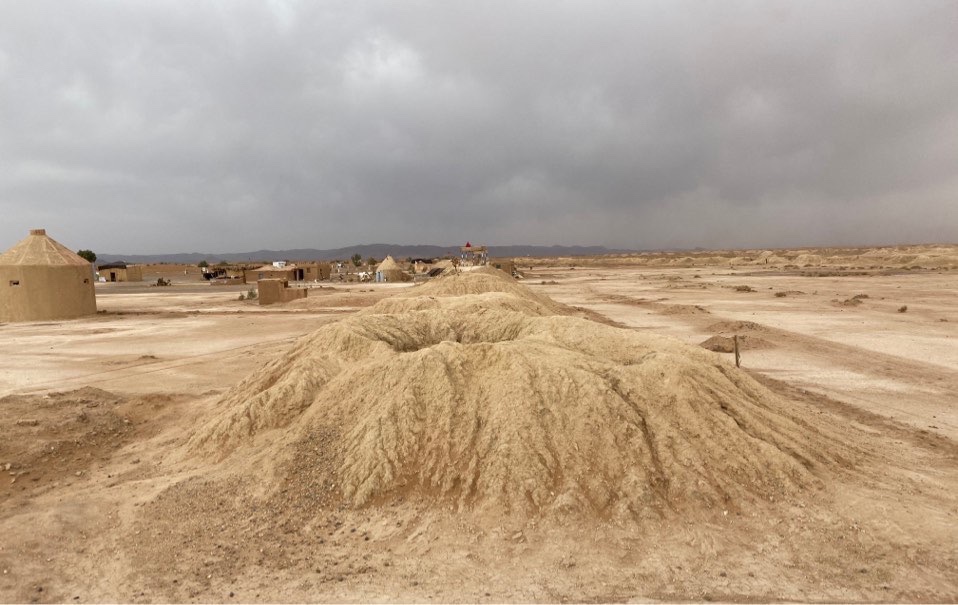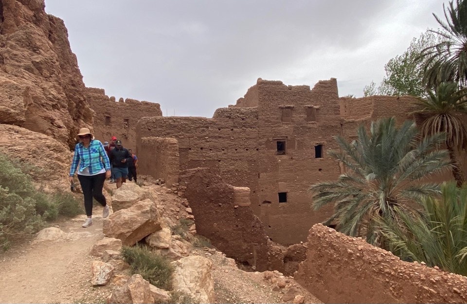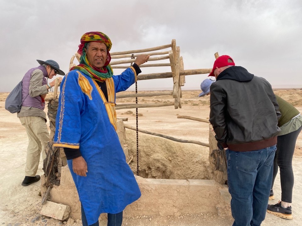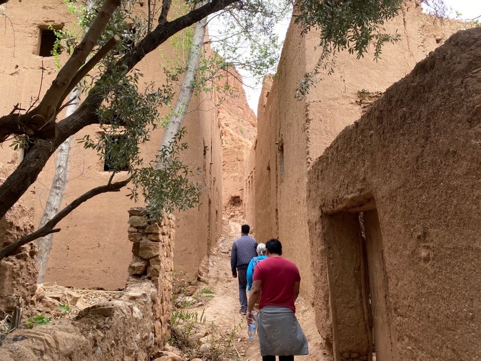 Then, along the Road of 1000 Casbahs, we stopped to visit the old irrigation canal system. It’s a series of underground tunnels from the mountains 25k away. Built starting in the 11th C. it carried water until 50 years ago. Then it was still knee high but now aquifer too low and it’s dry. The little mounds every few meters is one: excavated dirt, and two: access holes to go down and clear out any blockages. In summer they now sleep here as being 10 meters down in the rock it’s cool.