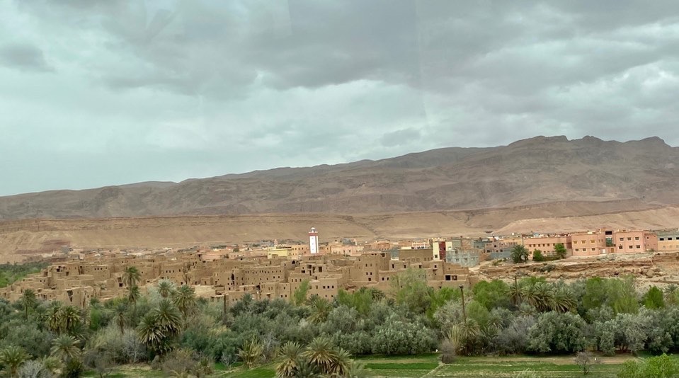 Back in the bus and we’re driving along the northern edge of the Anti Atlas Mountains. The oldest of the 3 great mountain ranges it’s foothills are weathered, rounded, and dark with minerals. New mining explorations portend huge development in the future.