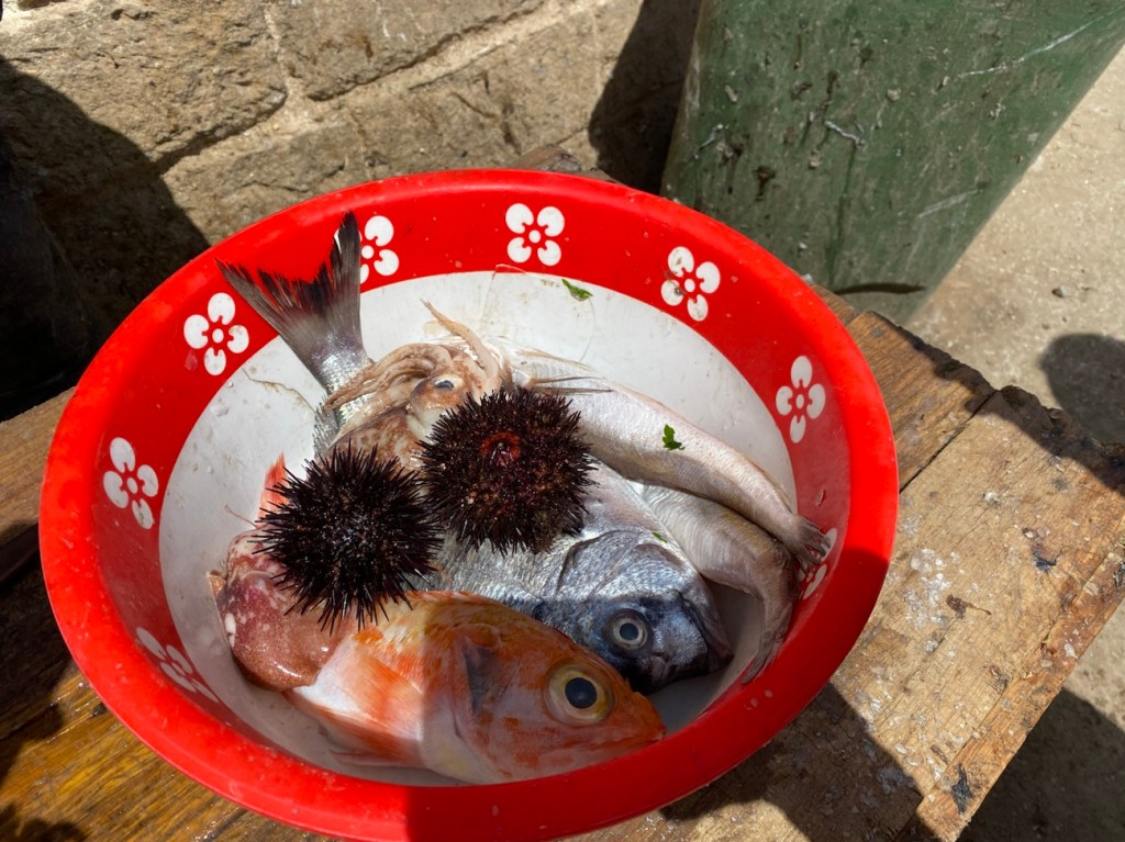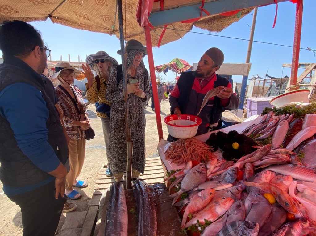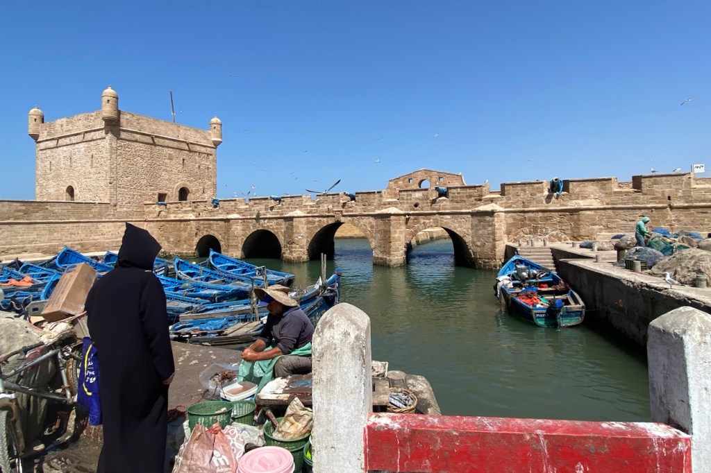 This involved following Saaid to the port where we stopped at a fish vendor to each buy a bag of fresh seafood (I choose shrimp, a giant prawn, and red snapper) then walked back through the Medina to a slew of little stands that cooked up whatever you brought them, served with fries or a salad. It was very tasty, very messy, and a lot of fun.