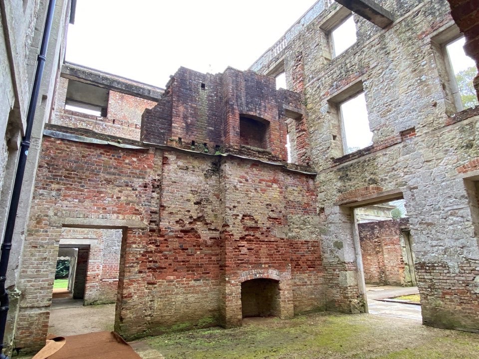On the far side I found a dedicated footpath that led me past sheep farms and a pack of alpacas to the estate of Appuldurcombe House, the ruins of an 18th C. grand manor. Once the “finest house on the IOW” the penury of various owners and then nearby bombing during WWII led to its falling into ruins. English Heritage stepped in and preserved the ruins as ruins and it’s a fun free site to visit.