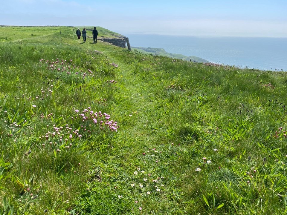 So said the Internet. In reality there were so many diversions in place due to landslips and path repair work that I clocked 10.5 miles and I was dragging at the end. Gorgeous walking along the cliffs, frustrating when diverted up away from the coast to walk along plowed fields, relieved to be back coastal but disappointed when this turned out to be muddy and overgrown. Repeat.