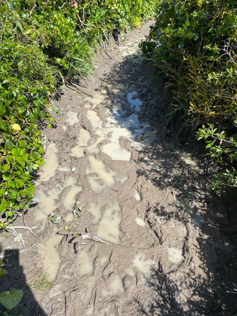Another landslip diversion up the slope into the woods. It was actually rather peaceful with dappled sunlight and chirping birds. Forest bathing? But with mud…