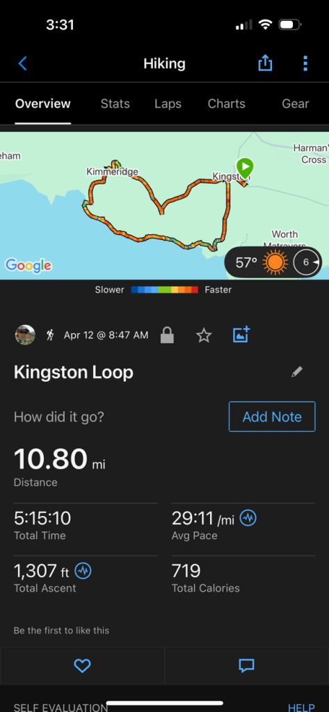 It was a 2 mile walk down from our hotel to rejoin the Path at the trail shown above. This is a new way up the Houns Tout hill as the previous path fell into the sea during a land slip in November 2023. Just opening in March, this path isn’t as steep a climb as the previous iteration but still a good warm up for the day.