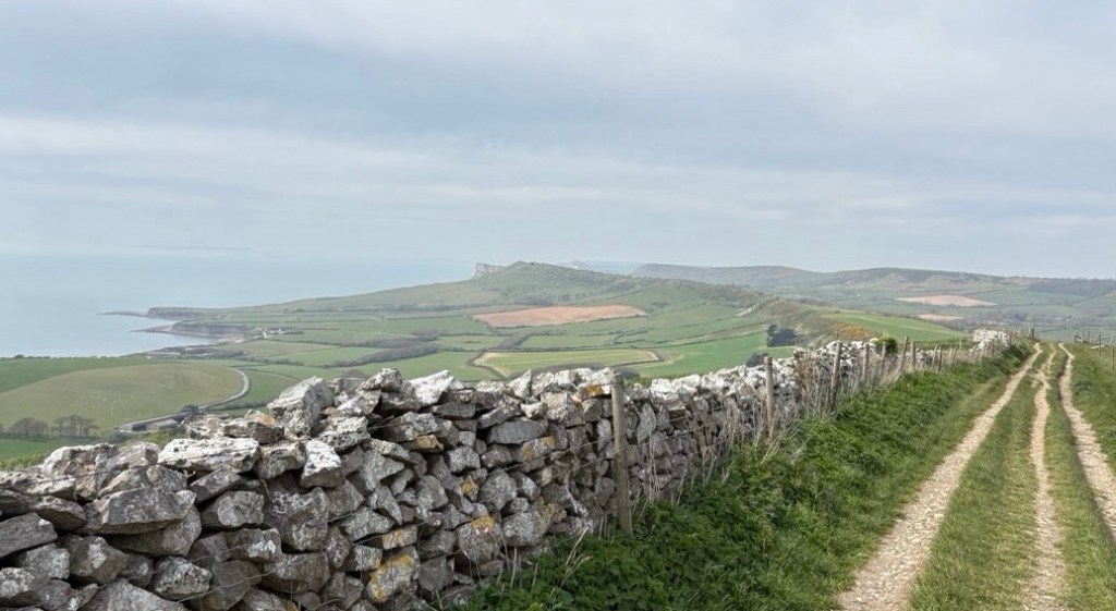 Difficulties in finding accommodation locally meant we were only 1/2 way through our day – we had to return to Kingston for the night. To make it a loop walk we took the Hardy Way which was a high level route with wonderful views of the coastal path far below…