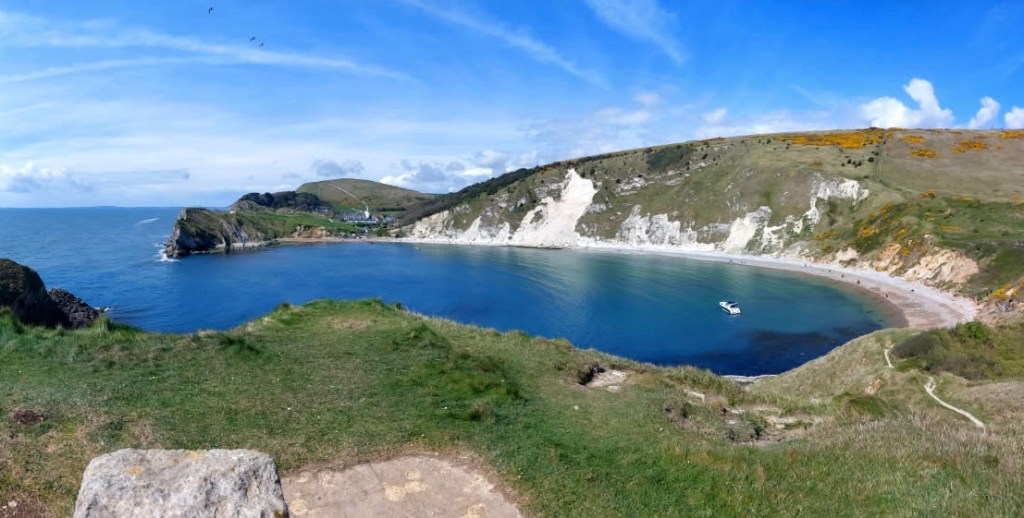 Lulworth Cove was teeming with tourists enjoying the picturesque cove in the warm Sunday sun. We negotiated the masses enjoying ice creams and fish & chips to walk a ways inland to our hotel and found the whole village charming.