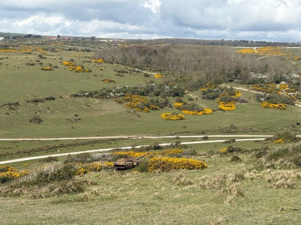 The Lulworth Military Range is an active firing/bombing range and therefore only open for walkers to cross at listed times, usually weekends (unfortunately not the weekend I needed in the middle of June, ergo my walking this section now). Since they use live ammunition it’s imperative we stay on path between the yellow posts: