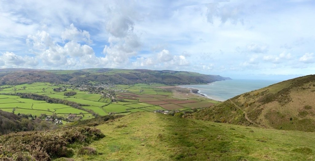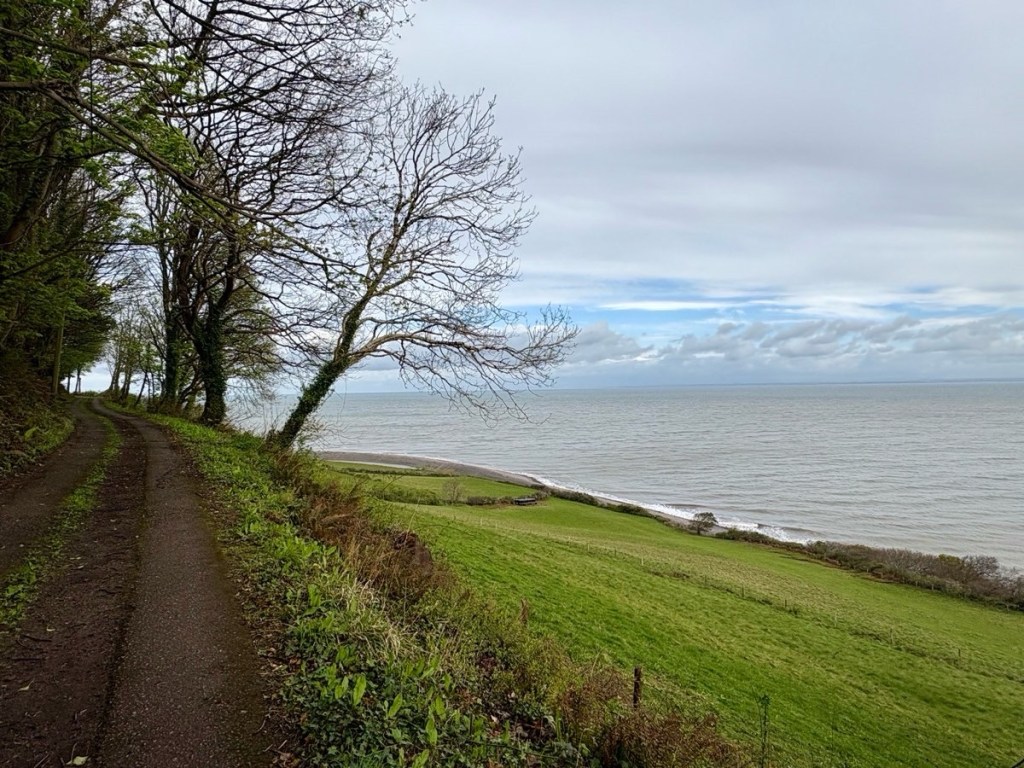 The route is the Old Coast Path and basically follows farm tracks over the inland hills. Another 2 miles in was another option to join the path closer to the sea but the wind was ferocious, gusting up to 30mph and therefore potentially dangerous on the exposed coastal route so I kept safely to my inland bridleway.