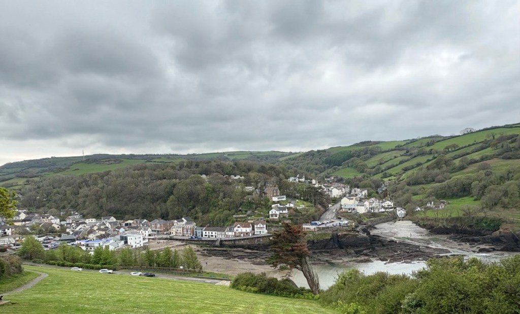A later start again today: a leisurely breakfast timed well with the finish of the rain showers (fingers crossed). From the hotel it was a half mile walk along the Heddon River to rejoin the Path, then a very steep climb up to round the point at the sea. Gusty winds had me gripping the bushes for stability going around the corners.