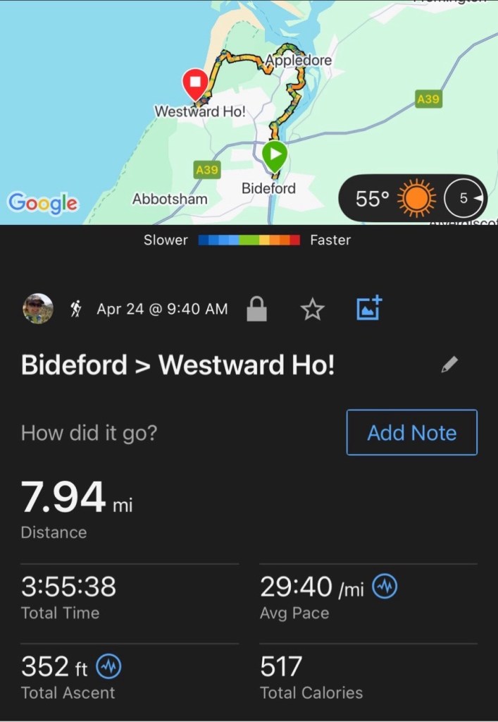The remaining 4 miles was a little bit coastal, a lot of grass crossing the peninsula that’s the Northam Burrows, and then a touch of the holiday town that’s my destination: Westward Ho!