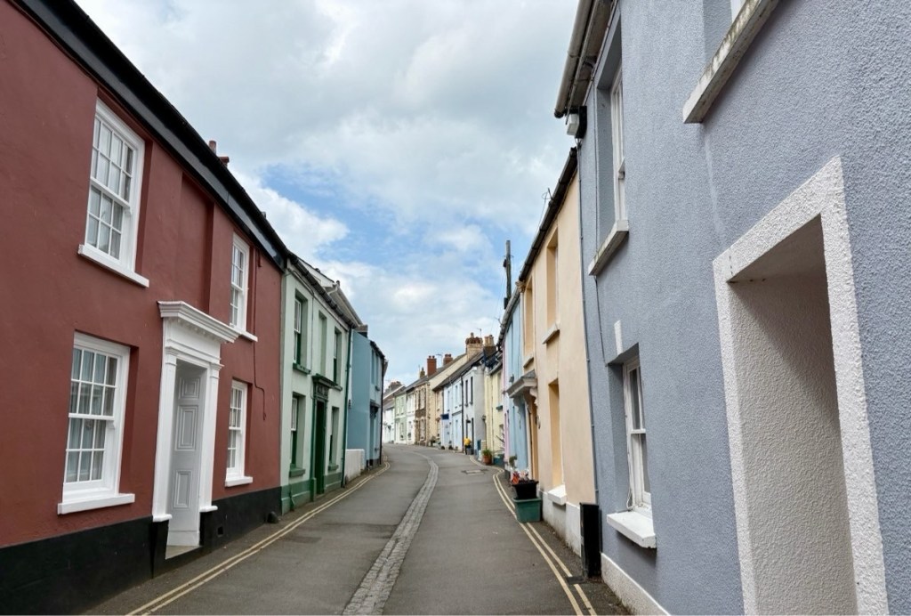 At 3 miles in I reached the muddy, industrial edge of Appledore, then turned a corner and there was town. I wasn’t clever enough to take pictures of the interesting waterfront but I did of the warren of little lanes and colorful homes: