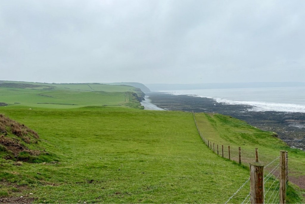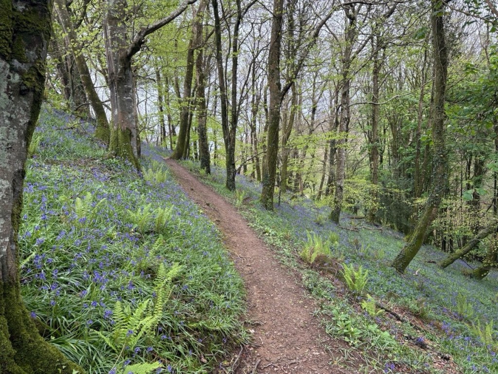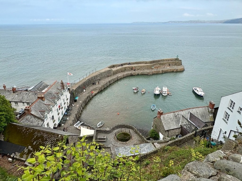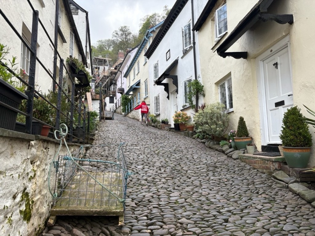 The last four miles of the stage went through some brilliantly green, wet fields that I happily trod, swishing the mud off my shoes. Then an hour on Hobby Drive, a cobbled road apparently constructed by prisoners of the Napoleonic Wars, before reaching Clovelly. “Where the steep, cobbled street tumbles down past gleaming white cottages to the tiny, deep-blue harbour…”