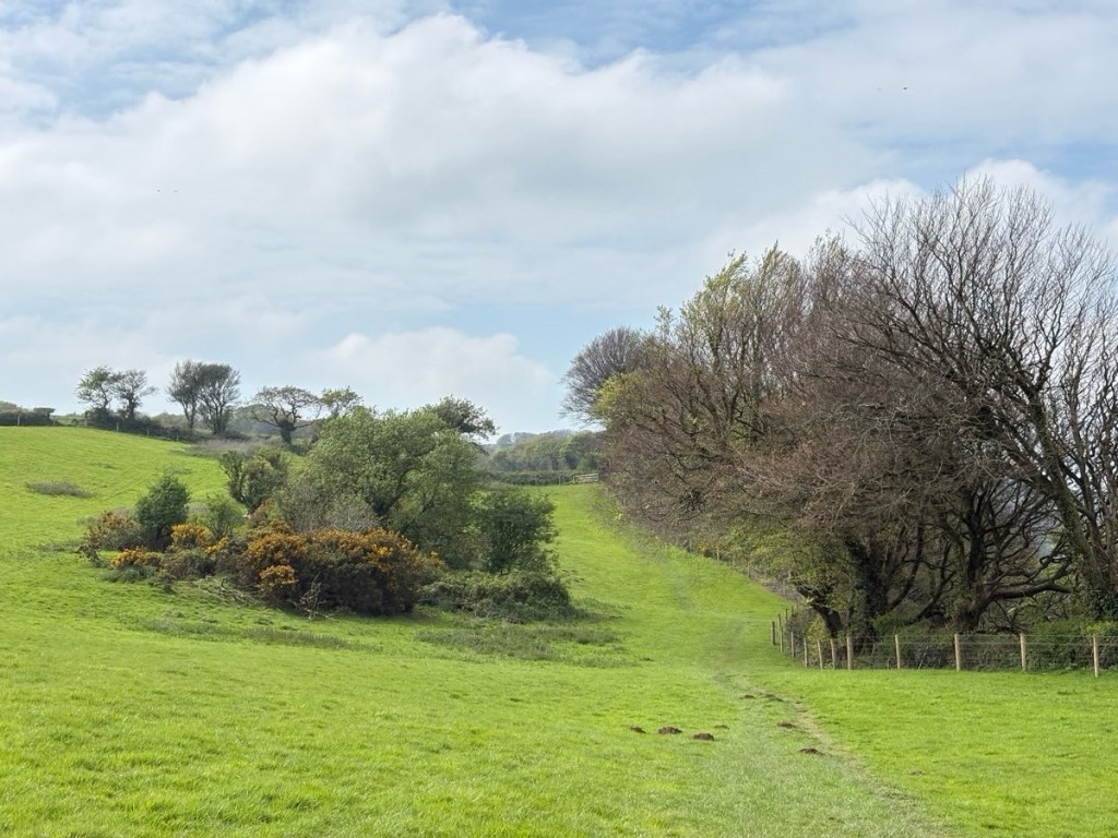 The Path followed the promenade out of town, along another rail>trail corridor, then out into rolling coastal hills for a couple of miles.