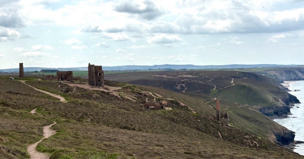 Many of the mines are at the cliff edge; some sinking up to 200’ below sea level and in places > mile out to sea. This has advanced cliff erosion due to the honeycomb of mine shafts that are hiding beneath the shrubbery collapsing over time. There are warning signs everywhere to stay on the Path!