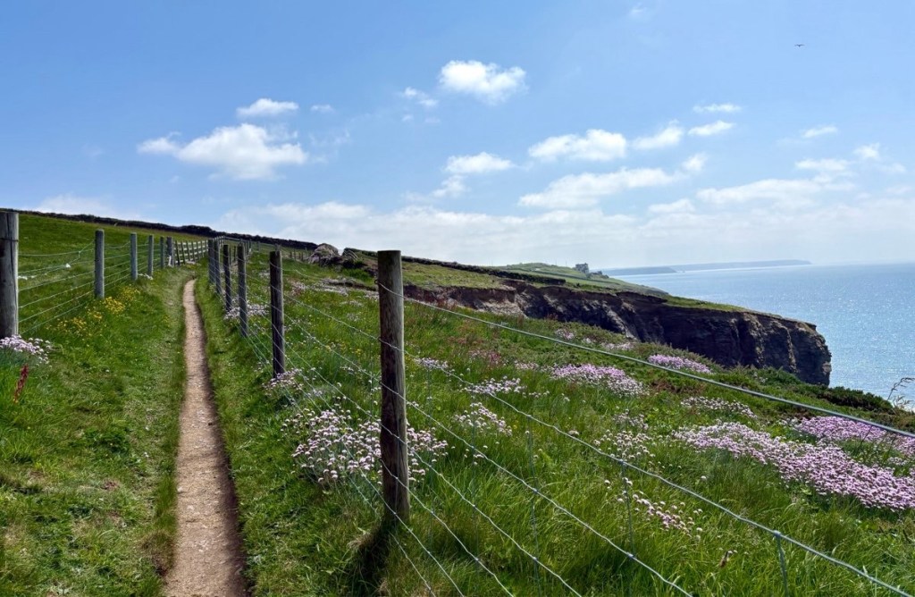 Getting closer to Porthleven the Path gets squeezed between fields and cliffs; just a narrow sliver of dried mud between fencing. Fortunately it was such a beautiful day otherwise I might have been frustrated at having to circle three sides of a field 🙄