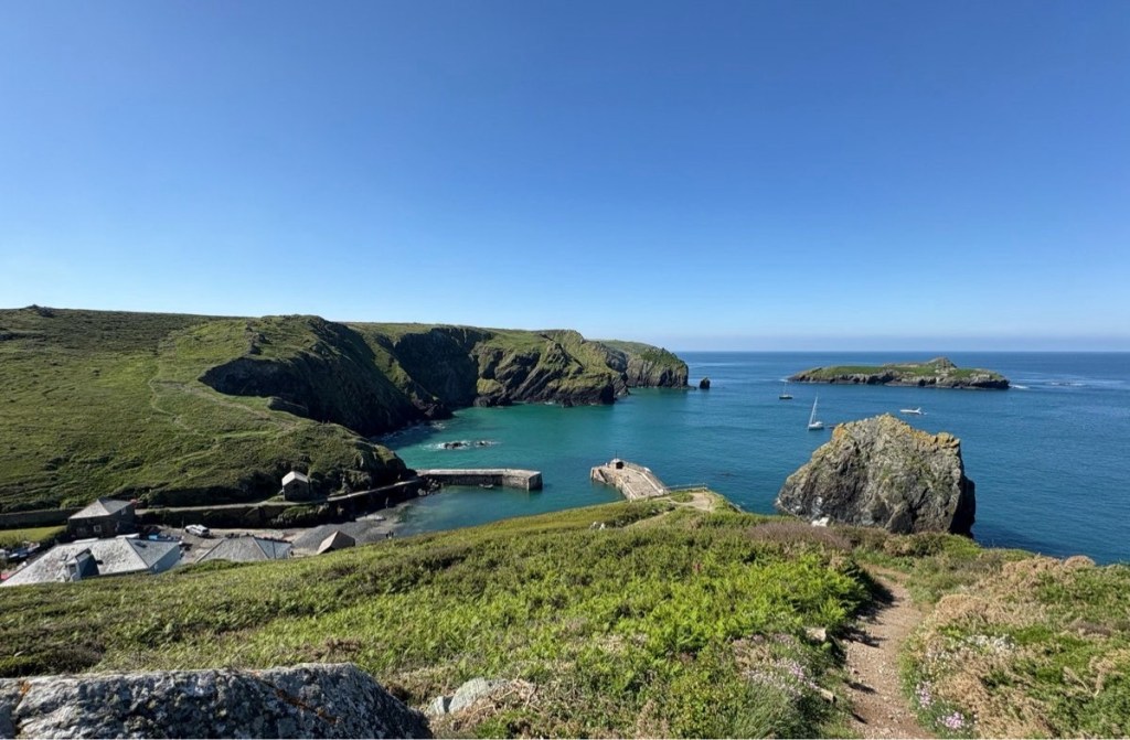 Two more miles, and another little cove: Mullion Cove with its substantial twin breakwaters that were built in 1891 for the seining industry. This was my halfway point so I treated myself to a latte in an old-fashioned tearoom that I think was once someone’s front room….