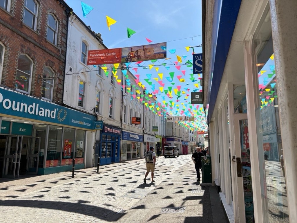 Falmouth is a vibrant town, a great place for a rest day. It was pretty empty at 10am but the street slowly filled with locals and tourists alike. As mentioned before, Main Street goes on forever and has lots of eclectic shops and so many enticing restaurants: Ukrainian, vegetarian, tapas, Nepalese, coffeehouses, and of course pasties! People were lining up at the Cornish Bakery for pasties! I took a picnic lunch back to my room and chilled the rest of the afternoon.