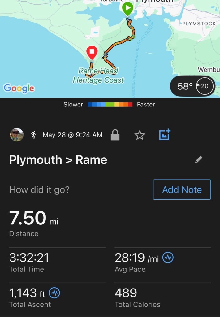 I had my luggage to deal with first. My knee still twinges so I’m continuing to use the luggage transfer service, but as I hadn’t booked it for today I took the early bus into Plymouth to drop it off at my hotel.