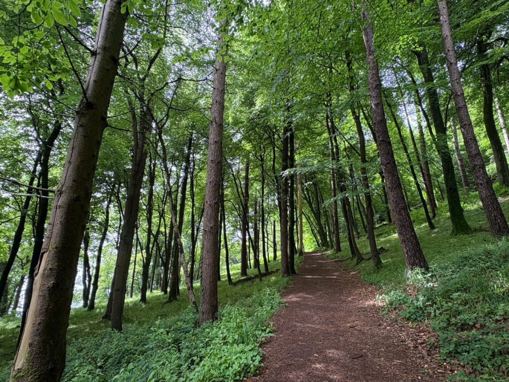 It was a beautiful, easy walk, mainly through woodland with glimpses of ocean and the occasional purple rhododendron. Nice, wide, dry(!) track – happy to amble along.