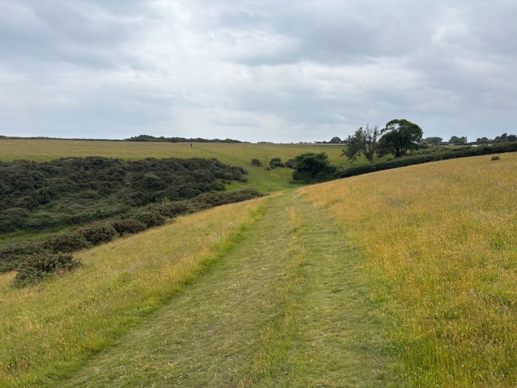 As far as photos, it was a grey/overcast day and beyond hearing the waves rolling on the beach below I had few views of it at all. I saw mostly fields, tunnels of trees, and had my nose against my toes climbing those hills.